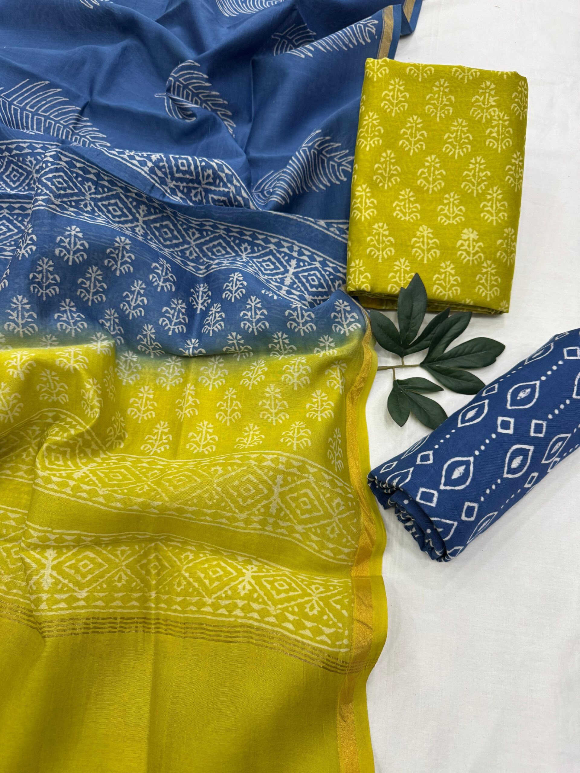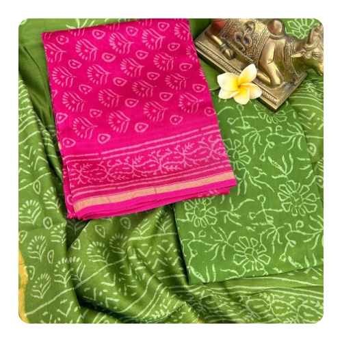 Premium Cotton Saree with Blouse Piece in Dual Shade (CS2573)
