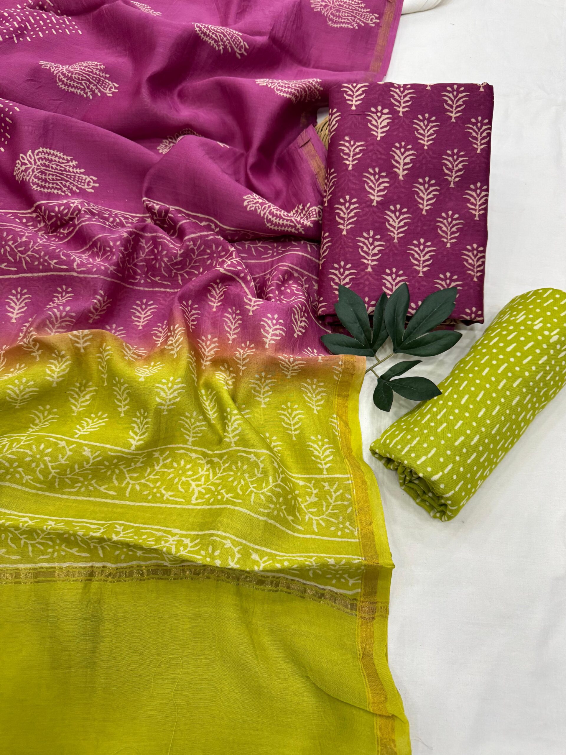 BEAUTIFUL PRINTED FLORAL STITCHED COTTON SUIT SET